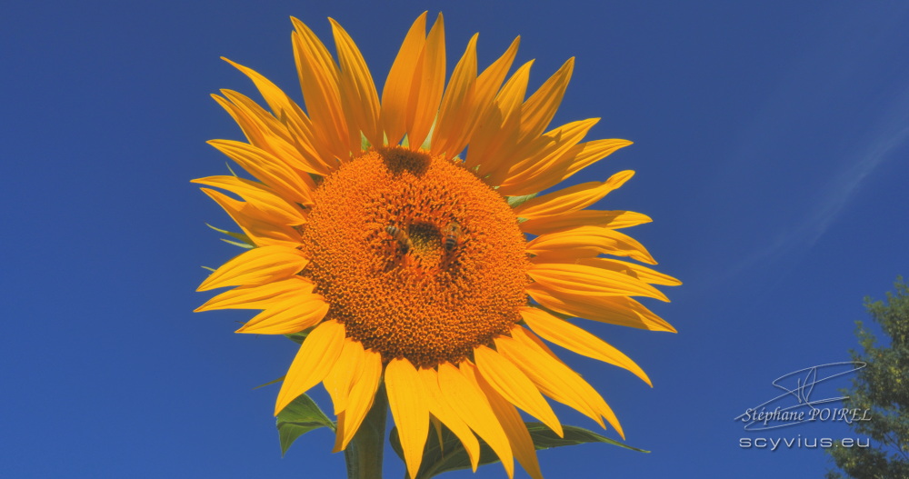 En augmentant la saturation des couleurs et en jouant sur la palette des niveaux. Un simple filtre dégradé bleu, rajouté au montage, suffit à rendre au ciel ses couleurs bleutées.