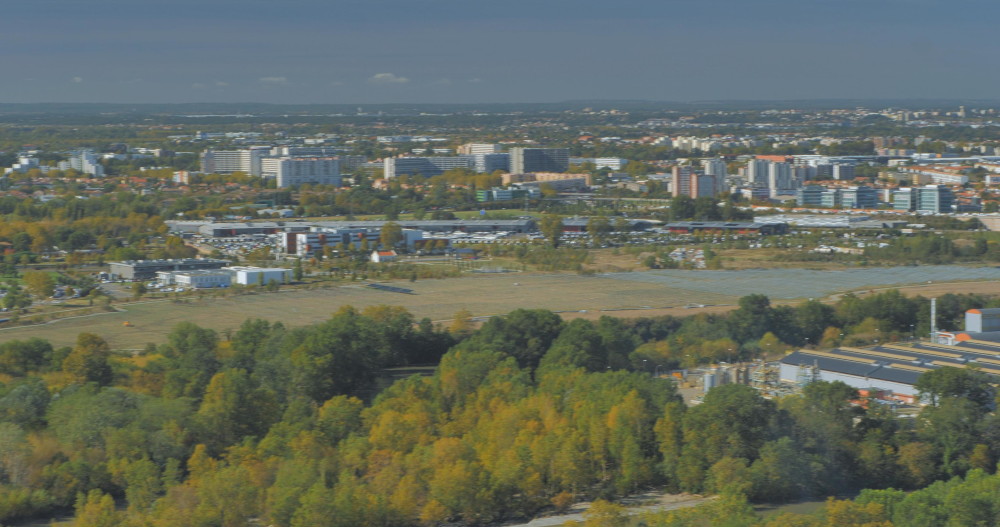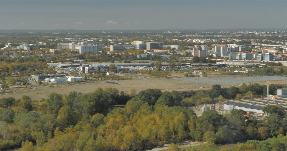 Cette image extraite d’une prise de vue depuis un drone, manque de couleurs à cause d’une orientation en léger contre-jour, et possède, de ce fait, des contrastes relativement élevés.