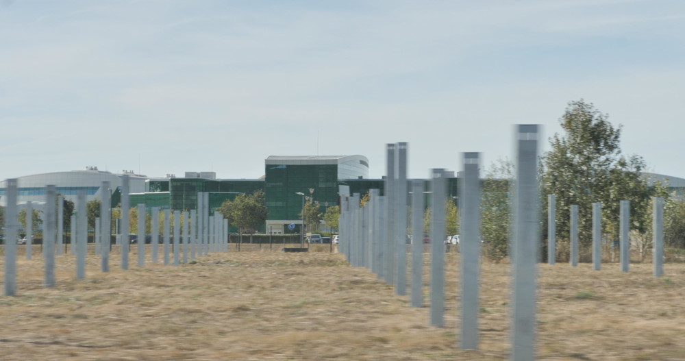 C’est un des rares plans où la balance des blancs a du être modifiée en post-production : ce plan est le tout premier qui fut réalisé en matinée avec le drone. Le soleil se trouvait de l’autre côté du bâtiment, et il possible que le pilote du drone ait laissé la balance des blancs sur automatique, auquel cas cela expliquerait les couleurs « froides » sur cette image vidéo.