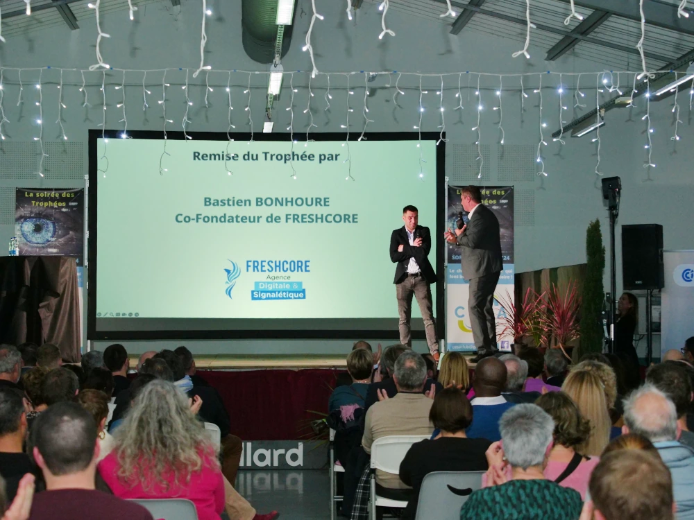 La soirée fut animée de « main de maître » par Yann FERNANDEZ, et 11 lauréats, dans 4 catégories, se sont vu remettre de magnifiques Trophées réalisés par FRESHCORE :